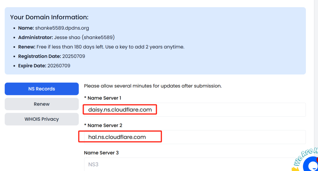 cloudflare接管免费域名的填写(根据自己注册cloudflare以后的填写)