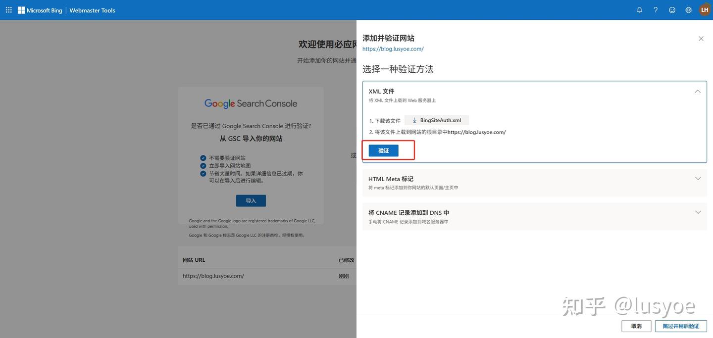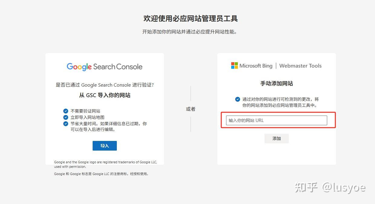 如果你已经在 Google Search Console 添加了网站,Bing 可以一键导入: