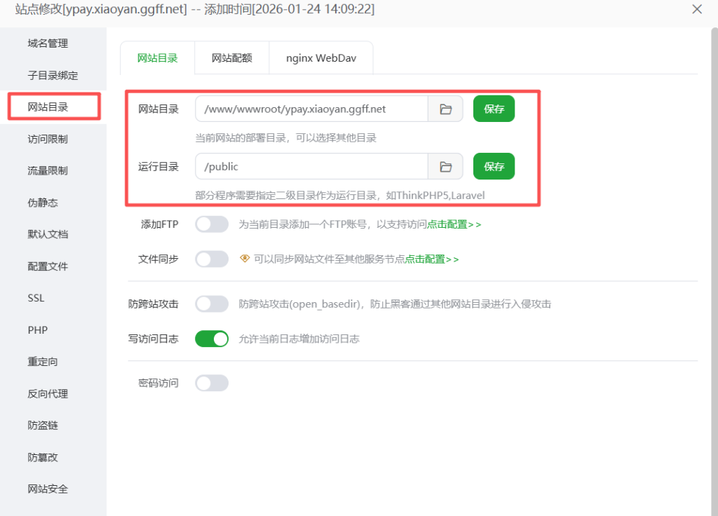 6、网站配置: