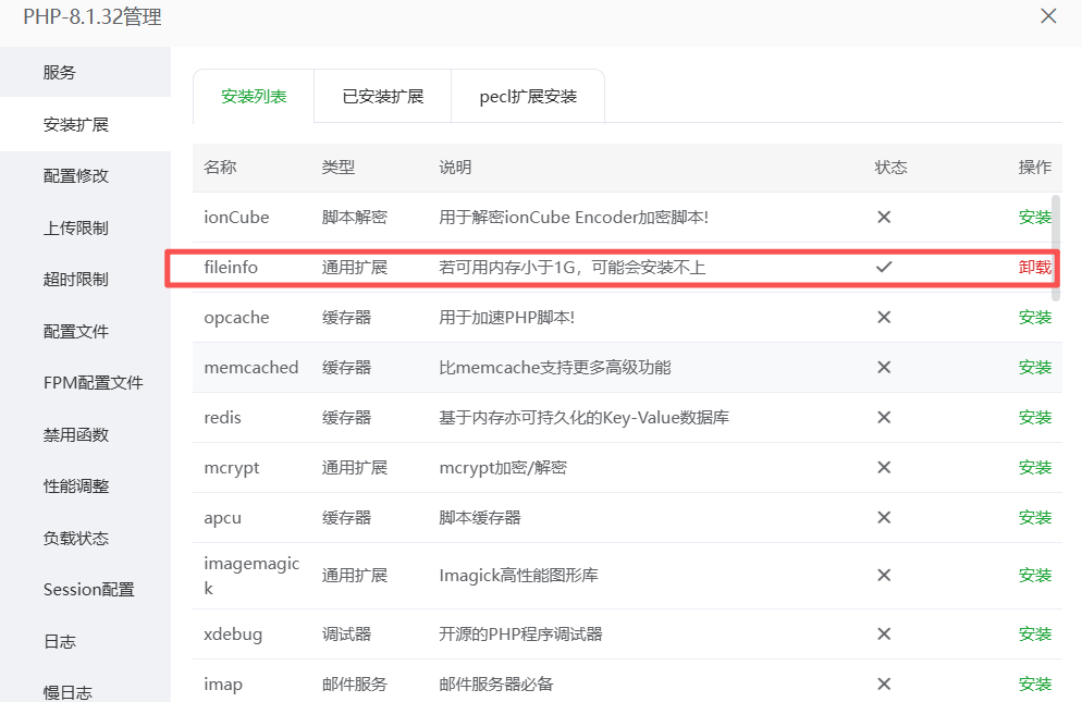 8、设置PHP8.1的安装扩展